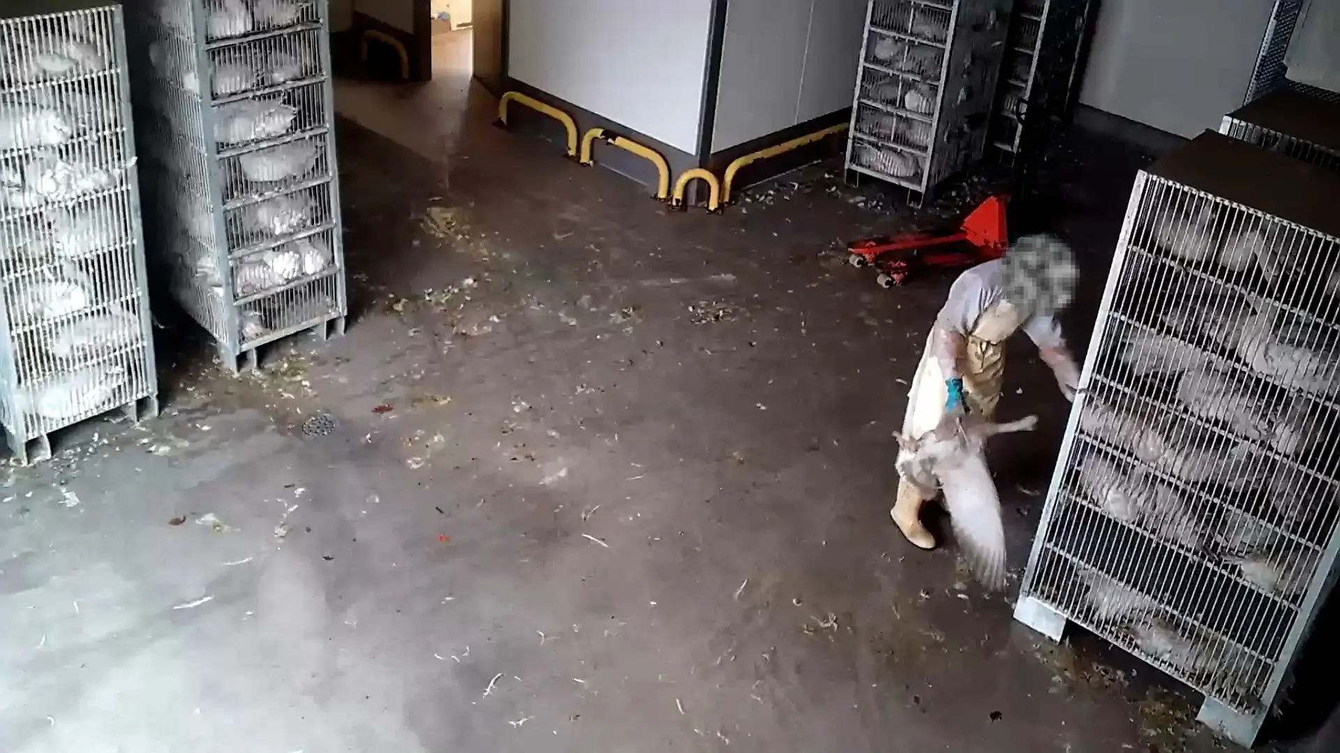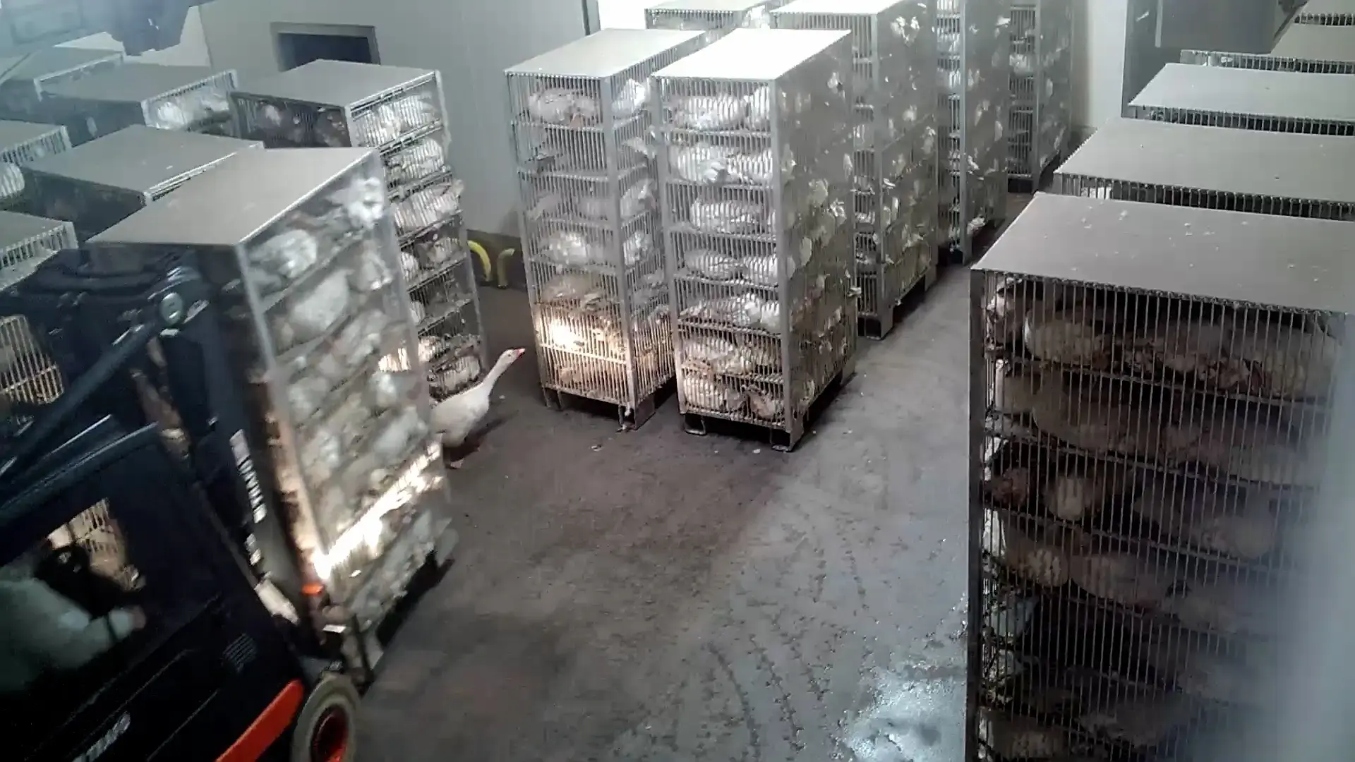 Besonders verstörend: In einer Szene reißt ein Mitarbeiter offenbar aus purer Belustigung Federn aus lebenden Gänsen. Viele Tiere müssen das Leiden ihrer Artgenossen hilflos mit ansehen – ein zusätzlicher Stressfaktor, der ihre Panik enorm verstärkt.