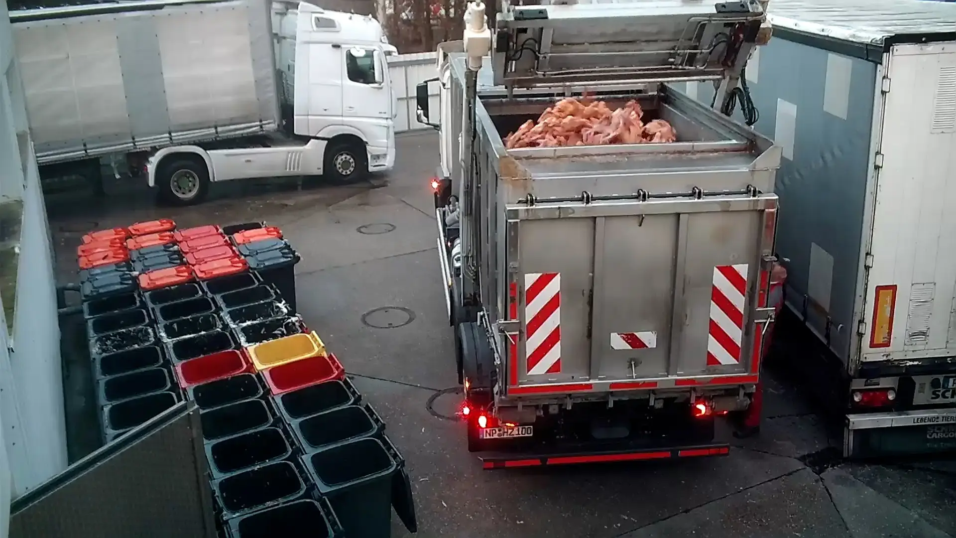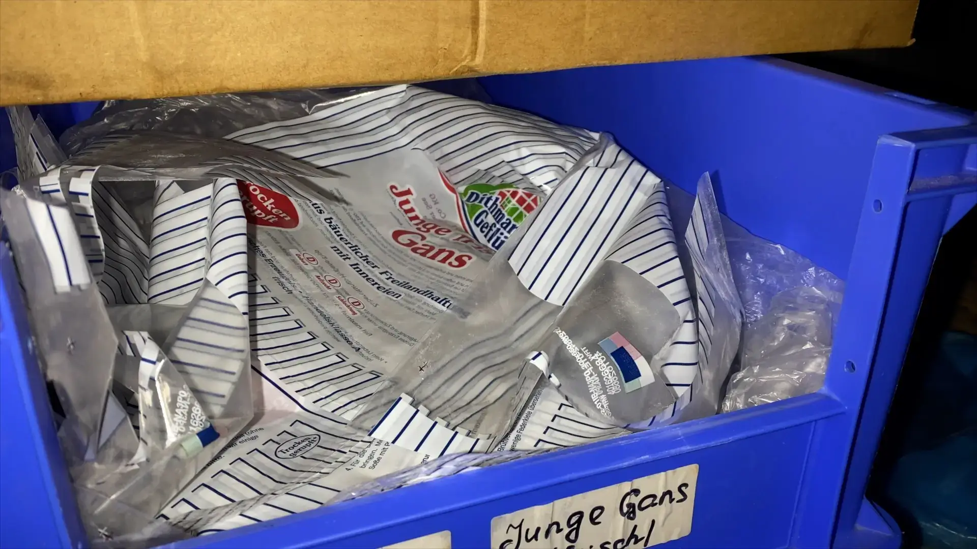 Die Aufnahmen zeigen, wie Transportboxen mit lebenden Tieren achtlos auf den Boden geworfen werden. Mitarbeitende ziehen Gänse ruckartig an den Hälsen aus den Boxen. Sie schlagen die Tiere mit der Hand oder Faust. Mehrfach werden Gänse gewürgt.