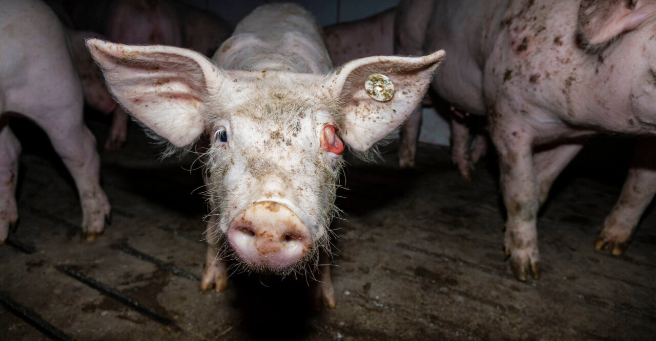 In einem Gang befindet sich ein Schwein, das schwer verletzt ist und dringend tierärztliche Hilfe braucht. Es ist zwar von den anderen getrennt, hat allerdings im Gang nicht ausreichend Futter und Wasser. Obwohl dies verboten ist, ist es dennoch Praxis in vielen Schweinemastbetrieben.