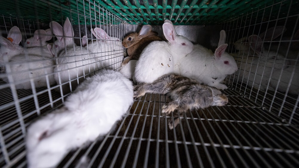 Bereits 2022 dokumentierte ANINOVA massive Missstände bei Zimmermann GbR in Abtsgmünd, der größten Kaninchenzucht Deutschlands. Heimlich erstellte Aufnahmen belegten tierquälerische Zustände: Kranke und schwache Kaninchen wurden mit Eisenstangen erschlagen. Einige Tiere wurden an ihren Hinterläufen gepackt und auf den Boden geschleudert. Zwei Mitarbeitende wurden daraufhin verurteilt.